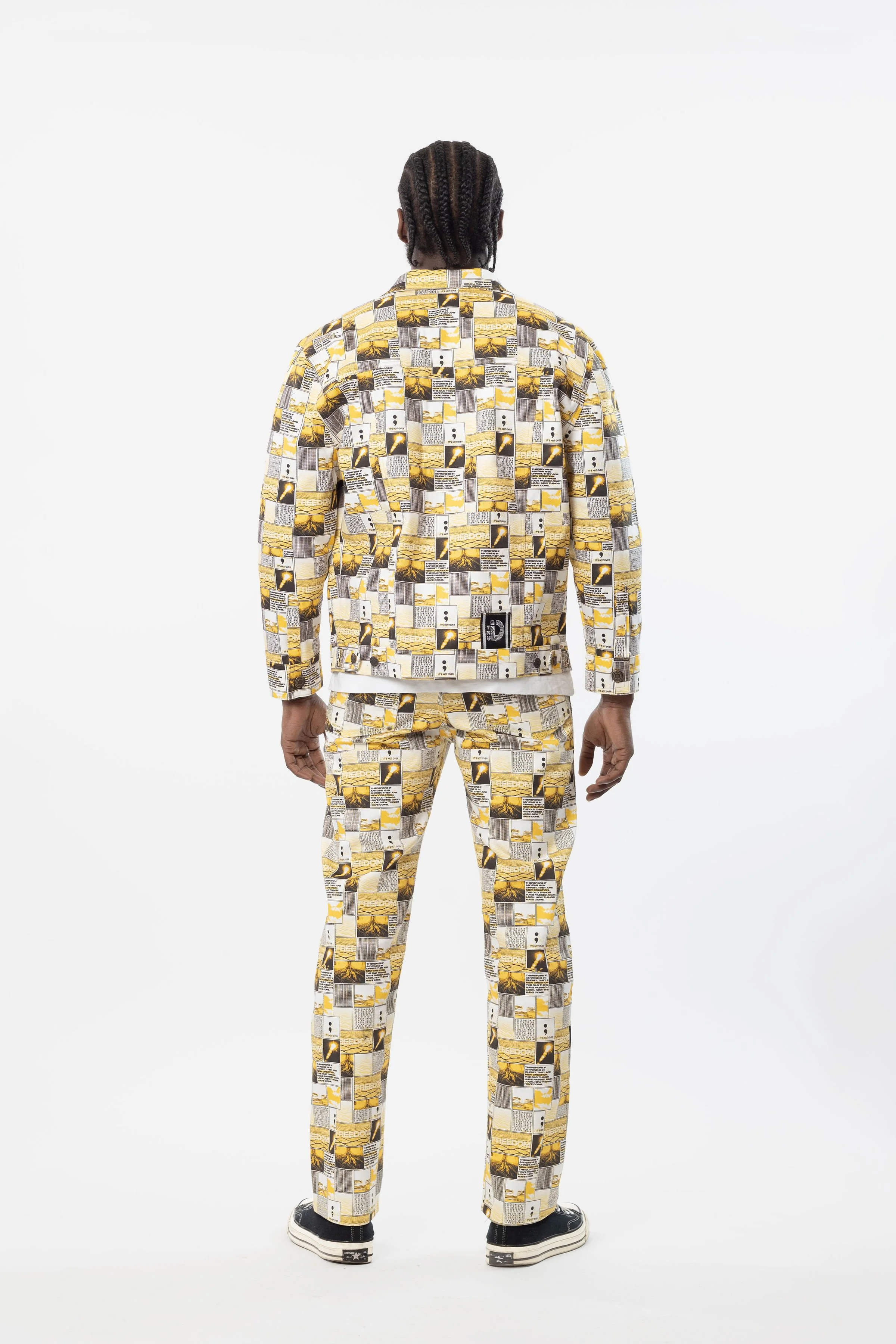 The 'Yellow Brick' denim jacket is crafted to make a bold statement with their striking all-over yellow comic style print and comfortable oversized design. Perfect for any season, especially summer.